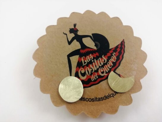 Pendientes tipo botón elaborados con latón puro y modelados uno a uno a mano.